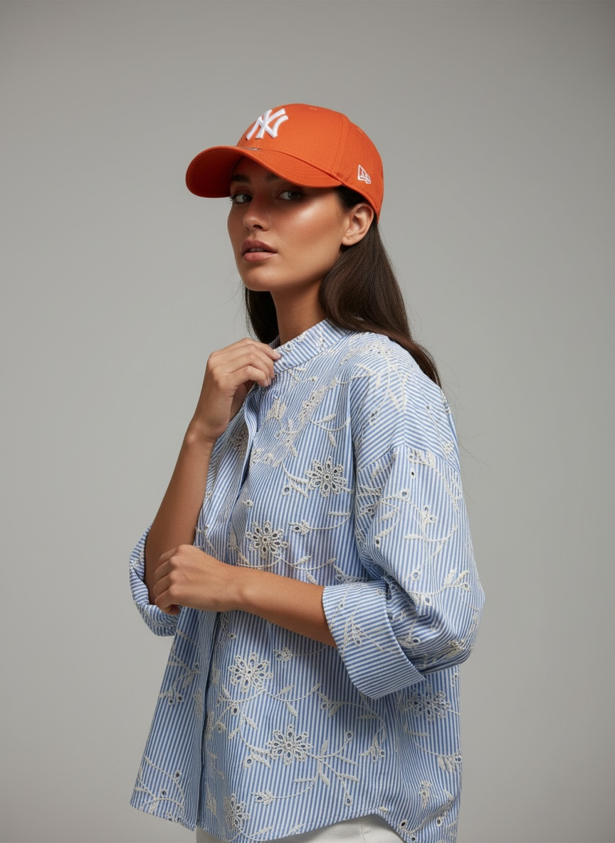 Camicia in cotone manica lunga intaglia unica